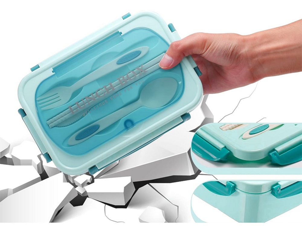 ⭐ Погрижете се за храната си във всяка ситуация! Представяме ви многофункционална кутия за обяд с отделения и вградени прибори за хранене. Идеална за закуска, обяд или междинни хранения – на работа, в училище, на пикник или при пътуване. Ще свърши работа във всяка ситуация благодарение на възможността за затопляне в микровълнова фурна, миене в съдомиялна машина и съхранение във фризер.